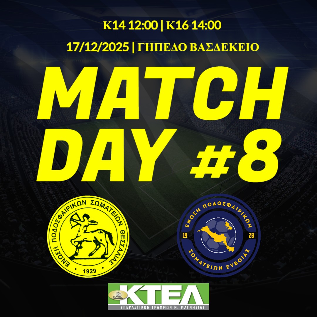 Την Τετάρτη 17 /12/2025 οι Μικτές ομάδες της ΕΠΣ Θεσσαλίας (Κ14 και Κ16) αγωνίζονται για την 8η αγωνιστική του 6ου Ομίλου για το Πανελλήνιο Πρωτάθλημα Προεπιλογής Εθνικών Ομάδων 2025-2026 με τις αντίστοιχες ομάδες της ΕΠΣ Ευβοιας.