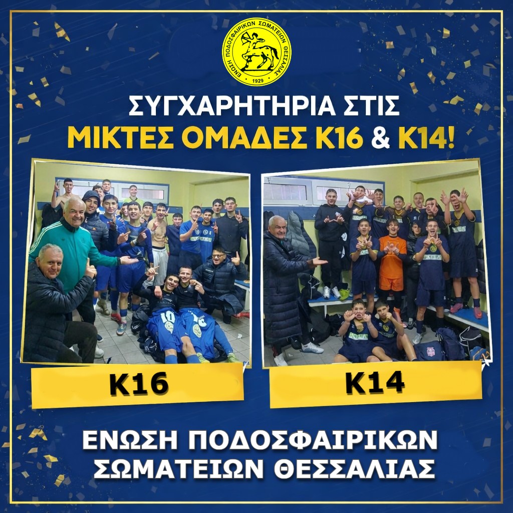 ΣΥΓΧΑΡΗΤΗΡΙΑ ΣΤΙΣ ΜΙΚΤΕΣ ΟΜΑΔΕΣ Κ16 - Κ14 ΤΗΣ ΕΠΣ ΘΕΣΣΑΛΙΑΣ